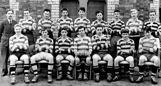 Mr. W. Dickey, Desmond Johnston, Terry Troughton, James Uprichard, Arnold Hatch, Colin Loughead, Randal Agnew, David Price, Archie Moore. John Price, Derek Woods, Norman McKinney, Peter Graham (Capt.), Bertie Strong, Bobbie Bunting, Michael Gordon.