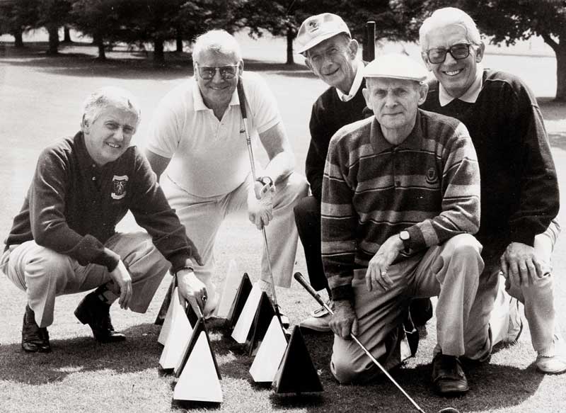 Enjoying a round of golf at Carrickblacker, Four Past Captains, from left, David Armstrong, Herbie McCartney, Dr Jimmy Garvin and Dr Billy Dobson. Front is Davy Conlon.