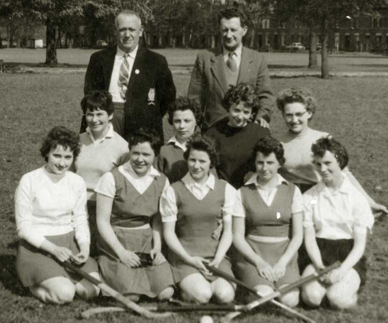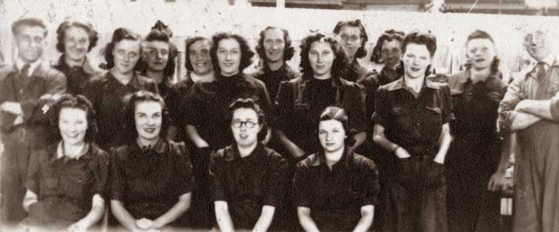 Workers in the Spence Bryson linen factory. Seated front are Miss Margaret Radcliffe. |