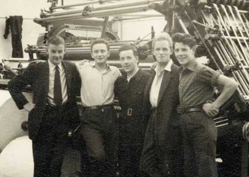 'Portadown News' newspaper staff. Back row left to R; Ben Forde, Joe Dickson, Noel Glasgow, Jimmy