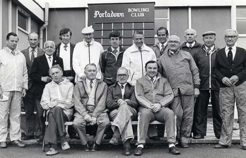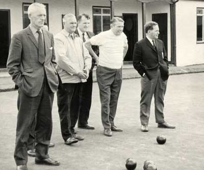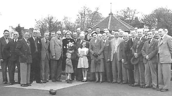 1952 or 53 at Portadown Bowling Club. Fancy roof in background is that of the old bandstand in the Pleasure Gardens.