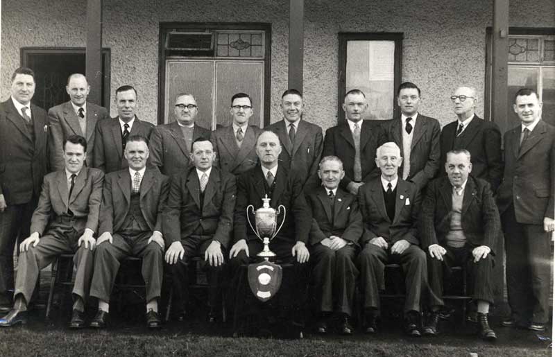 Back Row L to R: W.L. Robinson, D.F. Breakley, H. Cordner, J.F. McNee, J. Craig, J. Palmer, R. Mercer, D. McKeown, S. Edgar, D. Conlon. Front Row: N. Hewitt, R.J. McElroy, H. Sinnamon, W. Hutchinson, A.E. Wright, S. Crozier. Photo loaned by Daphne Palmer-Mitchell |