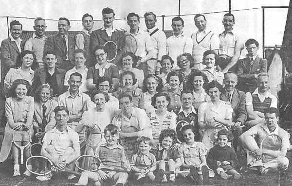 1946 or 47 at Dunowen Tennis Club This was on the Armagh Road. On extreme right of photo a little bit of the gable of one of the 'Salt Box' houses shows, one of these houses still stands. The area was redeveloped in the early 1990's with single storey cottages, Cottage Mews. After the winding up of the club the site was used by Dukes Transport, they moved to Loughgall Road then to present site at the Dobbin.