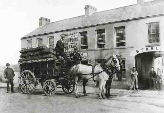 Above photo was e-mailed by Eamonn Butler son of Veronica Brankin and grandson of Thomas Brankin. The gentleman standing in centre of gateway is believed to be Thomas Brankin, The gentleman on extreme left of photo is believed to be Eamonn's great grandfather Thomas Brankin. The photograph was taken about 1900, Brankins Bar then would have been considered to be on the edge of town, nowadays the site would be considered as the centre of The Tunnel. Obins Street. Brankin's used to board people and stable horses in the buildings at the rear of the Pub. (On the country side of Obins Street there is an area called 'Brankin's Hill' the name came from this Brankin family, they owned a large granite house at the top of the hill, just opposite where the new St. John's Church is. Later the house became the dwelling of the Moonan family. Thanks to Dominic Hoey for the info) |