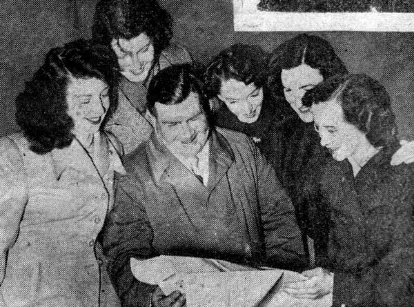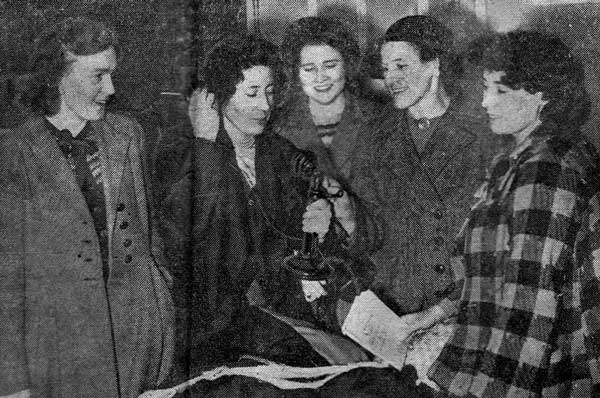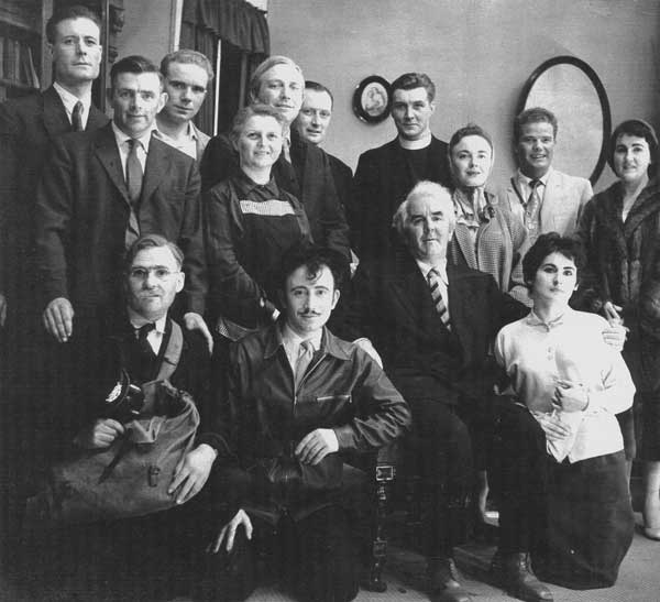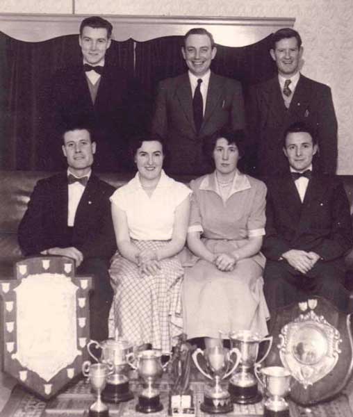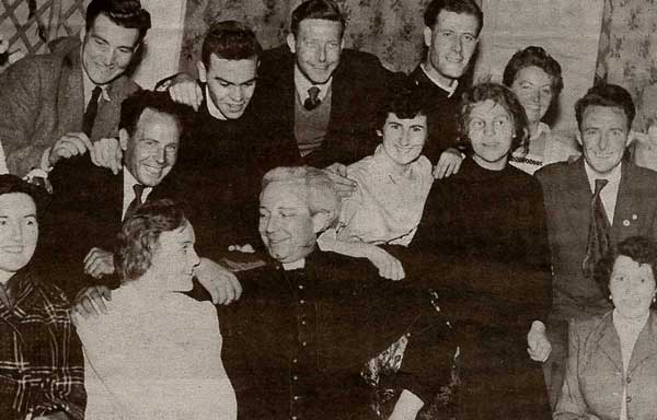 The cast and supporters after the play was staged at 'Red Island Holiday Camp' in 1957. Back row L to R; Jim McCullough, John Diver, Jim McCabe, Dam McAreavey, Mrs Duffy. Front row; Bridie McKeever, May Diver, Michael Duffy, Maureen Foy. |