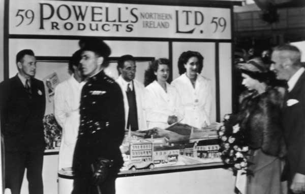 Powell's at the Balmoral Show 1949 L to R: Mr Titler manager of Powell's, Inspector Pim, Harry Foy a member of PCDS, Doreen O'Neill, Mary Nugent, The Princess Elizabeth, and unknown gentleman. |