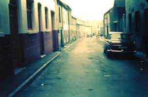 David Street viewed from West Street. The building on left side of pic was John Bennett's bar, it fronted onto West Street. |