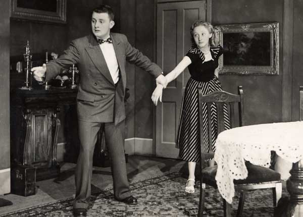 In 1947 a new cross community Drama group was formed and named ‘Portadown Drama Society’, this name was changed to ‘Portadown Drama Circle’ and as most of its productions were under that banner, it is how it is remembered by Mid-Ulster theatre goers. In almost a decade it produced a wide variety of plays taken from the Irish, English and American theatre. Eric Anderson, a teacher at Portadown College and a prime mover in the group’s formation, produced ‘Blithe Spirit’ (Noel Coward) and ‘Ten Little Niggers’ (Agatha Christie) as well as other plays. A talented producer, Gerry McCreesh chose ’Friends and Relations’ (St. John Ervine) and finding a large cast at his disposal showed his interest in American comedy with a sparkling production of ‘The Man Who Came to Dinner’ ( Geo Kaufman and Moss Hart). This was so successful that he followed it by another Broadway hit ‘Arsenic and Old Lace’ (Joseph Kesselring) He was also responsible for the staging of ‘The Barretts of Wimpole Street’ (Rudolf Beisier) Denys Hawthorne acted in several plays but undertook the production of ‘The Holly and the Ivy’ (Wynyard Browne). Denys joined the Belfast Group Theatre and became a professional actor, he had a successful career in England in television, films and radio. Another actor who became a producer was Bill Kenny, his choice was the comedy ‘The Happiest Days of Your Life’ (John Dighton). Other plays presented were ‘Rope’ (Patrick Hamilton), ‘Antigone’ (Anouilh), ‘They Got What They Wanted’ (Louis D’Alton). All of the plays were staged in Portadown Town Hall at a time when the seating was wooden tip-up seats and the place lacked the extensive equipment installed some decades later.