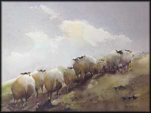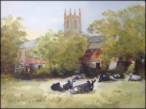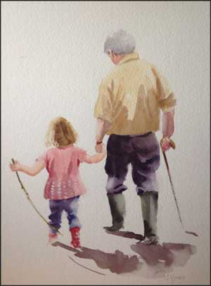 Watercolour 14" x 10" Walk through the Fields SOLD