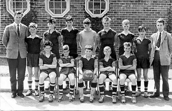 Back Row L to R: Mr. E. McCleery, ---2---, ---3---, ---4---, ---5---, ---6---, ---7---, ---8---, ---9---. Front Row: ---1---, Wilfie Adams, ---3---, Geoffrey Robinison, Noel Allen. |