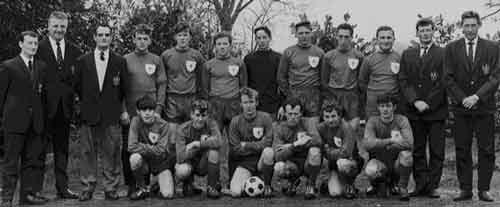 Sam is a rugby fan but his Company did have a football team. L to R back row:- Malachy Kelly - Sam McGredy - John McIldoon - Dennis Maguigan - Jim Creany - Derek Proctor-Albert Stewart - Jackie Stewart - Michael McCoo - Harry Minish - Dessie Orr - Sean McCoo. Front row:- Jim Keith - Jackie Bain - Joe McGrarth - Tommy Kelly - Brendan Kelly - Dessie Furphy. |