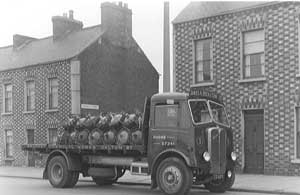 1950's Bridge Street. Lorry loaded with carboy's, The gap between the terrace houses was the entrance to Francis Street. This was a part of the Marley Estate. |