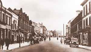 Corner of Thomas Street and High Street. The building in Thomas Street was The Queens Hotel, notice the horse drawn carriages used for ferrying the patrons of the Hotel. |