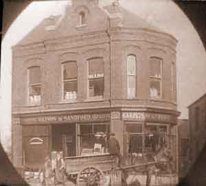 Corner of Woodhouse Street and high street. Old Town Hall at junction of High Street and Woodhouse Street, 1887. Burnett's shop occupied this site from the forties until the seventies. A new building was constructed for the Halifax Building Society in the nineties.