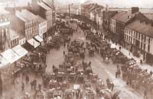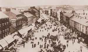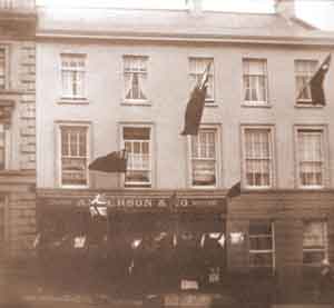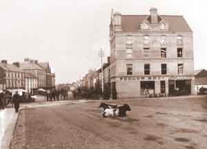 Mr. John Jones, Butcher and Messrs. J.J. Acheson. Grocers. Robert Paul, Hardware, was Messrs. Edgars, Uprichards and Rountree and Hewitts. Market Street.
