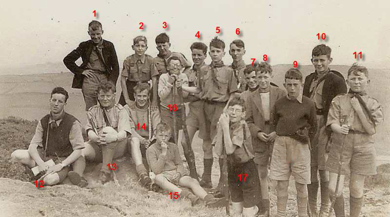 1957 in the Mournes 1= Alvar Cooke - 2 = Jim or David Twinem - 3 = ???? - 4 = Douglas Fogarty - 5 = Billy Wilson - 6 = Trevor Irwin - 7 = Alan Menaul - 8 = Charles McLoughlin - 9 = Billy Sands - 10 = Don Campbell - 11 = Leonard Henry 12 = George Fogarty - 13 = Rev R G Mc Alister = 14 = Wesley Flannagan - 15 = Tom Flannagan - 16 = Daniel Thompson - 17 = Bryan Mortimer Photo loaned by Don Campbell of Canada |