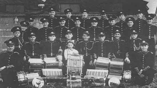 St. Patrick's Accordion Band 1946-48The Tunnel BandFront L to R:- J. Douglas - P. Wilson (Jun.) - J. Bennett - P. Lawless - J. Bailey - P. Lawless (Jun.) - P. Wilson - J. McCann - E. McNally - R.J. McCann - J. Lappin. Middle Row:- S. Lawless - M. Henderson - H. Foy - J. McCann - J. Byrne - J. Daley - J. Davidson - J. Creaney - Arthur Mallon. Back Row:- J. McKeever - P. Garvey - S. Dunbar - T. Creaney - J. McGurk - J. McVeigh. Thanks to Arthur Mallon for supplying the following
