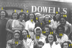 Workers of Powell's Jam Factory River Lane in 1948. Later the operation moved to Charles Street marketing their product as 'Goldenlea Jam' 1.=Josie Lynn/2.=Annie Hobson/3.=Minnie