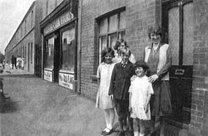1933 Mrs McAnney and friends outside her shop in Obins Street. The shop was opposite Irish street. |