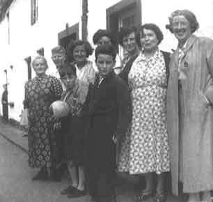 Group of residents in their street of River Lane 1953 Mrs Fox - P. Douglas - Jim Reynolds - Lucy Reynolds - Desmond Hamill - Mary Hamill - Mary Faloon - Kitty Douglas - Rose McNally. |