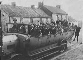 A charabanc loaded up for a days outing to the seaside. The photo was taken during the 1930's in West Street, Edgarstown, just outside where Ford's Café used to be.