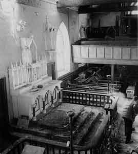 Old St. John's Church Drumcree 1905. The Church building was demolished in the early 1980's in an unique way, more or less by hand, every stone, brick and artifact was mapped and numbered, the original Church fabric, interior and exterior has been reconstructed in the Ulster Folk Park and Transport Museum near Belfast. |
