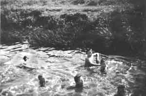 1932 - Six lads in the old Tunnel bathing hole, part of the Corcrain river which runs behind the present Abicoil Spring factory in Obins Street. The lad most prominent and two thirds from the left is Peter Lawless from Curran Street. Peter in adult life became a barber, he worked from his home in Francis Street.