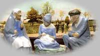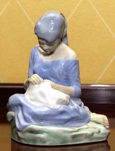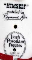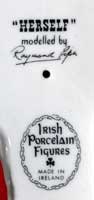 These figures were cast using liquid clay or slip, as it was technically known, and were kiln fired twice. The first firing was at a temperature of 1250oC. The double process was needed in order to ‘fix’ particular colours and ensure the sharpness of the under glaze back stamp. They were certainly the best and most expensive figures made by Wade Ireland. In production, on and off, for fourteen years they were not a particularly strong seller at the time but they are now eagerly sought by collectors who appreciate the quality of these prestige figures. All of the series were re-issued in the 1990’s by Seagoe Ceramics Ltd, a subsidiary of Beauford plc, who had taken over the old Wade premises in Watson Street prior to moving to a new factory on the outskirts of the town. These later figures, though produced using the original moulds, differed somewhat from the originals. They were generally painted in darker tones. The differences were more obvious in some figures than in others. For example, the older version of Mother MacCree had a light blue bottom on her skirt; in the Seagoe version it was grey. The top of Eileen Oge’s dress was blue/grey but this became much darker grey in the later figure. Widda Cafferty’s blouse was grey/blue in the earlier figure but almost chocolate brown in the Seagoe version. To complicate matters slightly, the author has recently seen a 1970’s Widda Cafferty with a very dark blouse, differing markedly from other authentic versions of the figure produced around the same time. The collector need not be confused as the older figures were clearly marked, Irish Porcelain, Made in Ireland and carried the name of the figure and its modeller. All of the 90’s figures have a back stamp including the words ‘Seagoe Ceramics’. |