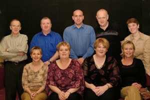 L to R Back Row: Glynis Edgar, Margaret Pearson, Irene McCann, Tess McFarland, Eileen Webb. Front Row: Dessie Lennon, Jim Grimley, Ann Bain, June Hobson. |
