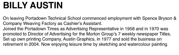 Billy Austin's Sketches of notable Portadown people in the 1960/70's Page 1