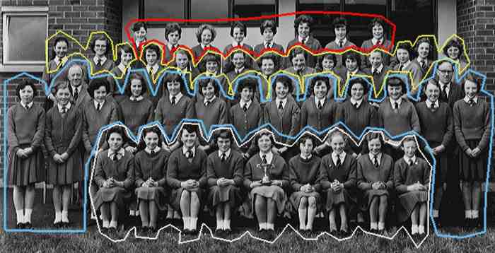 Winners of the W.E.V.A. Cup for Girls Choirs April 1962 Back Row of eight L to R outlined in red: Barbara Conn, Marlene Tedford, Barbara Colvin, Marion Matchett, Muriel Crane, Dororthy Roper, Amelia Lyttle, Irene Dawson.