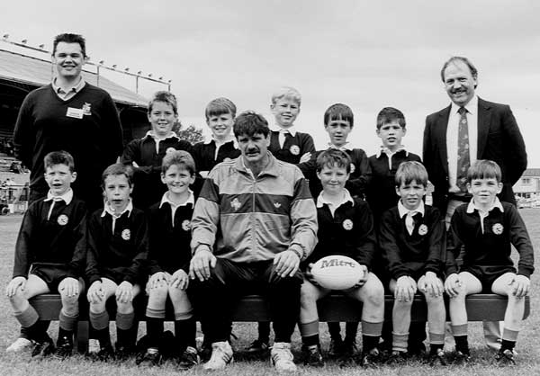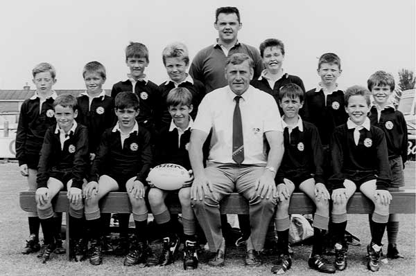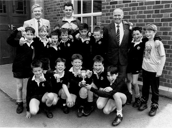 Back Row L to R: J.Stephen Doyle (Teacher in charge) - Neil Lappin - Jason Hunniford - Paul Lindsay - David Lappin - John Magee - Trevor Hillen (Chair of N.I. Northern Bank Sports Club) Front Row: Dean Madill - Andrew Dowdeswell - James Mullen - Willie Anderson (Ireland Cartain) Andrew Robinson - Jonathan Topley - Jonathan Medlow.