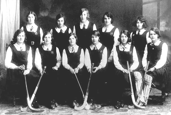 1929-30 Barbara Kerr, Moira Seale, Muriel Smyth, Tina Chambers, Odey Hewitt. Winnie Gracey, Rene' Trueman, Carry Mason, Alexa Woods (Capt.), Edith Barber, Annie England. |