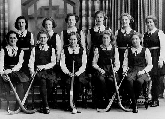1936-37 Margaret Jamison, Lily Power, Betty Atkinson, Patricia Scott, Rotha Irvine, Patsy Walsh. Evelyn Trimble, Gwen Sheridan, Emely Johnstone (Capt.), Ena Hampton, Aileen Johnstone. |