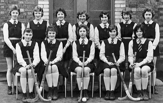 1959-60 Stella Clingan, Miriam Mann, Joan Hamilton, Ann Hollinger, Diane Watson, Annette Breeze, Lily Reavie. Muriel Woolsey, Ruth Thornton, Hillary Maginnis (Capt.), Sandra Curran, Marion Graham. |