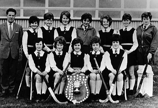 1962-63 Mr. Jones, Ruth McKinley, Iris Mann, Alison White, Isobel Davison, Heather Turner, Ann Patterson, Rosemary Gowing. Edna Ruddell, Myrtle Richardson, Lily Reavie (Capt.), Rene' Clingan, Emily Matchett. |