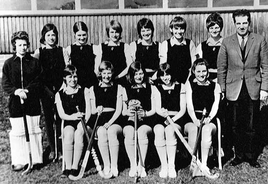 1969-70 Rosemary Allen, Linda Matchett, Amber Abraham, Elizabeth Wright, Pauline Matchett, Judith Carson, Hilary Uprichard, Mr. S. Jones. Pauline Thompson, Colette Long, Roberta Cosgrove (Capt.), Esme Boyle, Joan Maginnis. |