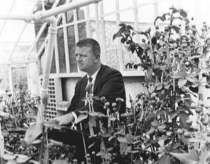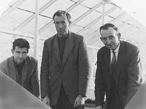 Sowing rose seed are from left to right: Pat Judge, (hybridizer), George McNabb, (hybridizer), George Bain, (glasshouse foreman). |
