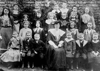 Principal Miss Logan, with Ruby Hagan, Meta McCammon, Jennie Perry, Dorothy Fulton, Lizzie Wilson, Pedlow, Jack Collen, Ronnie Forbes, Verney Fulton. |