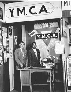 On left Mr. Nat Anderson owner of local pharmacy, on right, Mr. Bob Raj, President of the Y.M.C.A. |