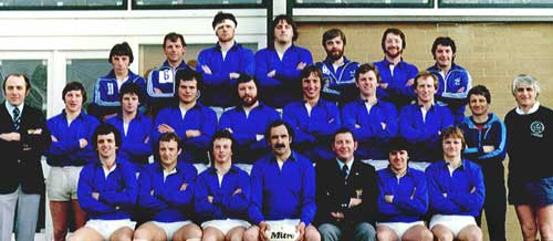 1980 Back Row L to R: M. McKee, R. Stewartl, D. Forsythe, E. Liggett, J. Murtagh, M. Ferguson, B. McCleery.. Middle Row; H. Porter (Coach), M. Fullerton, D. Maguire, S. Sherry, K. Guy, A. McGonigle, B. Hanna, V. Trueman, W. Gribben, A. Sturgeon. Front Row: A. Gray, A. Gribben, I. Wray, C. Murtagh, H. Matchett (president), , L. Joyce, H. Rolston. |