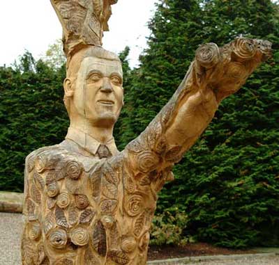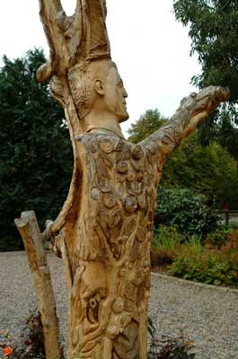 The rose 'Oranges and Lemons' has been planted at the foot of the artwork.