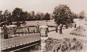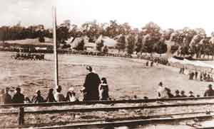 Cycle track in Peoples Park, 1900. Note the rail track in foreground, this is the main Belfast to Dublin line.