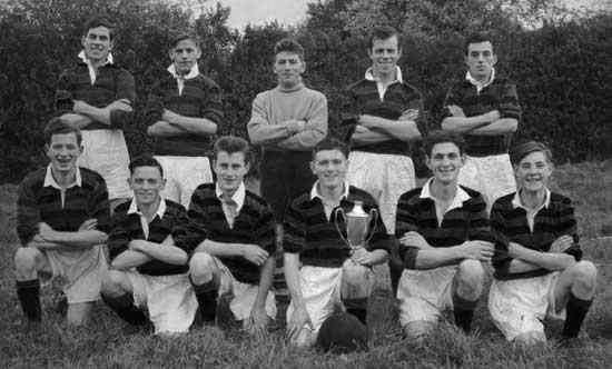 Back Row L to R: Vincent Devlin, Bob Webb, Bobby Haire, Pecky Grimes, Billy Pauley. Front Row: Paddy Murrray, George Laverty, Vincent Murray, Raymond McConnell, Jackie Hobson, Ronnie Love Photo loaned by George Laverty. |